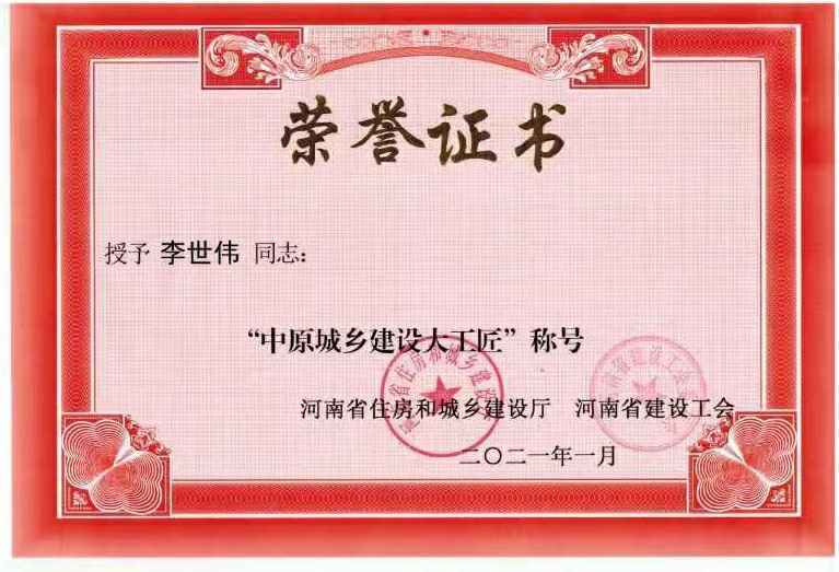 开云体育-开云(中国)李世伟同志获“中原城乡建设大工匠”称号