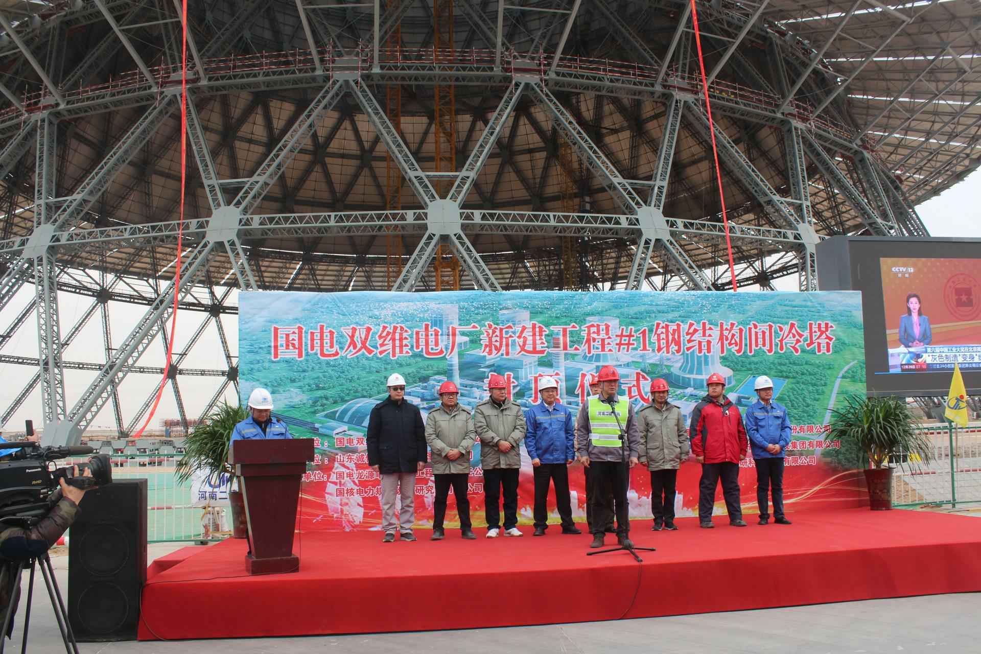 国电双维电厂新建工程#1钢结构间冷塔主体结构安装完成