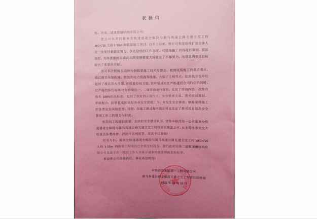 中铁四局集团第一工程有限公司向开云体育-开云(中国)发来表扬信